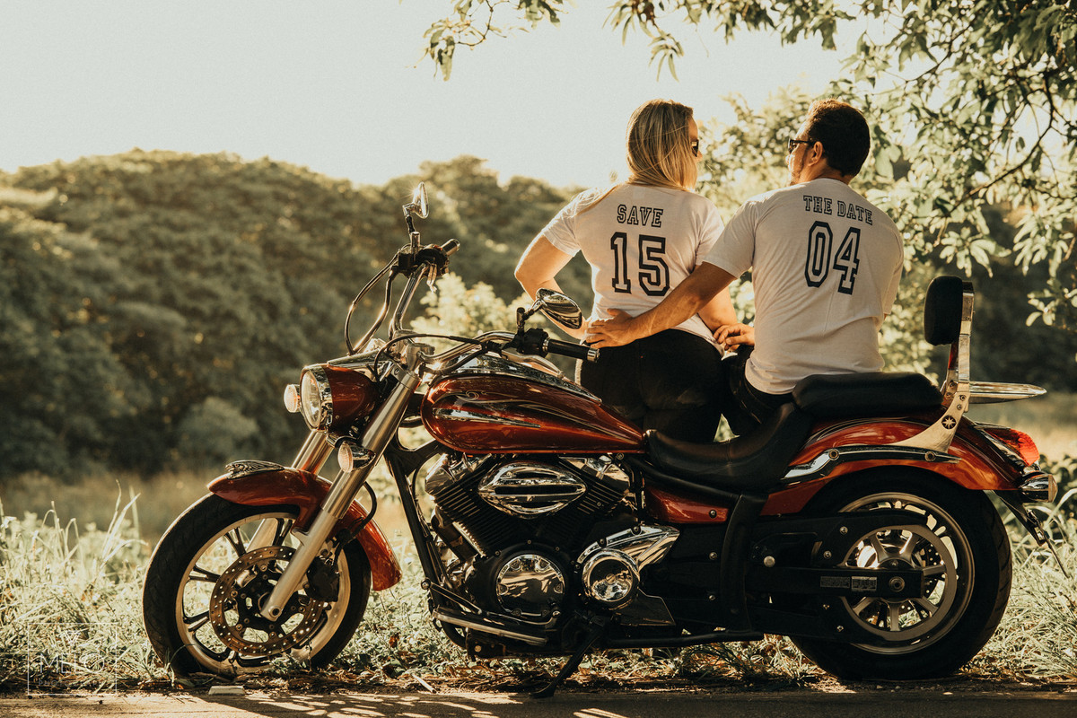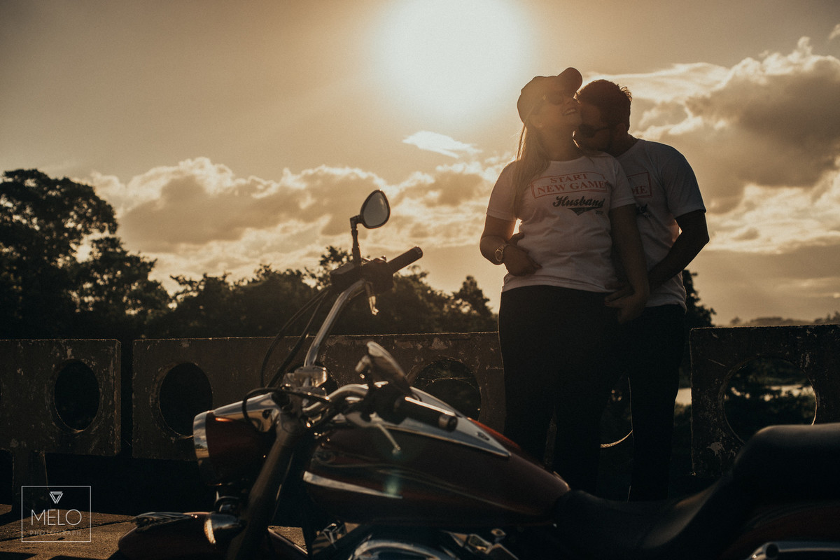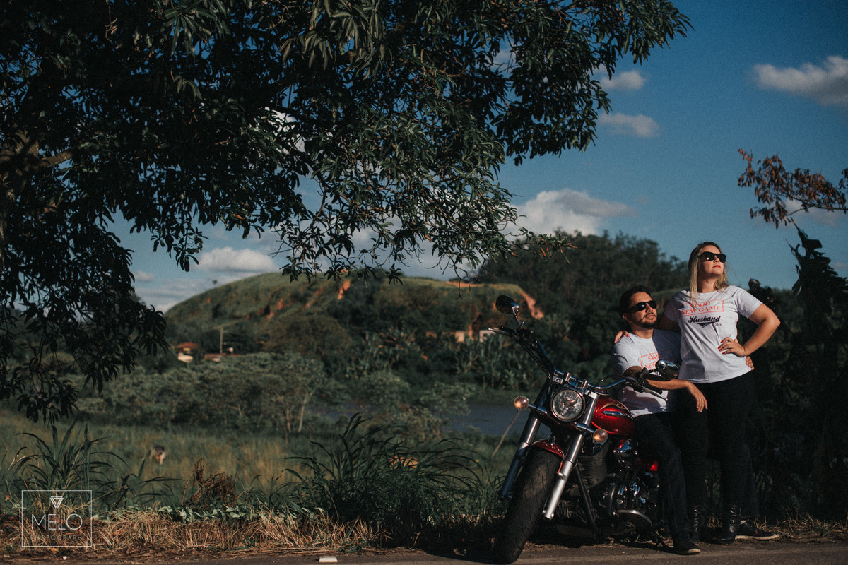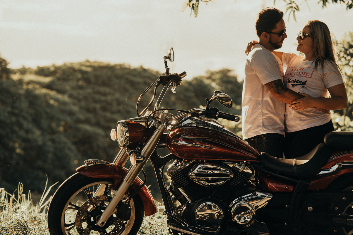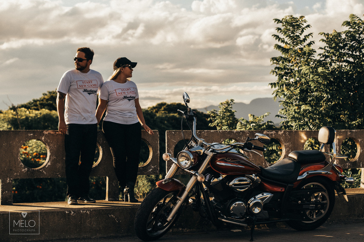Em um final de tarde lindo nós fomos fazer as fotos desse casal lindo com sua moto! Já havíamos tido um dia lindo em Paraty antes, mas quando eles vieram com a ideia da moto nós não pudemos recusar, amamos uma boa ideia pra foto :D